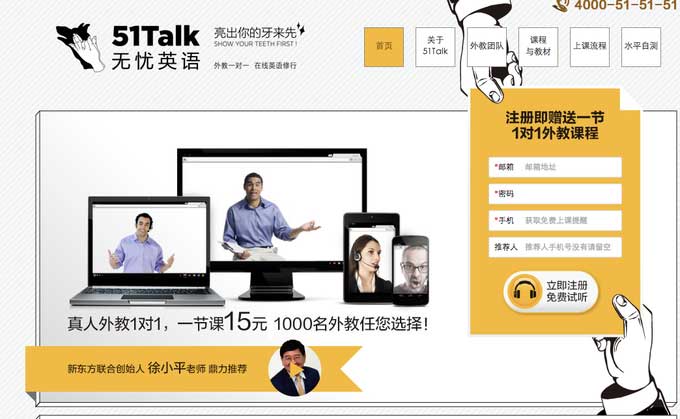 2011 年 7 月成立的 51Talk 到现在已经是国内规模最大的在线英语培训学校之一,作为外教一对一的在线英语培训,51Talk 一直走低价路线,因为师资主要来自菲律宾,所以它的课程价格差不多是线下培训机构的 1/5。在 2011 年底,51Talk 曾获得真格基金的天使投资,并在去年年底获得 DCM 数百万美元的 A 轮融资。而现在,51Talk正被期望成为“英语培训领域的小米手机”。黄佳佳说他们和顺为在理念上契合,认为体验好的英语学习也可以是性价比高、便宜的,不会说得付几万块才能学 ; 区别于传统线下的教育培训机构,51Talk 希望能提供给所有国人一个和外教学好英语的机会。顺为基金里就有人在 51Talk 上学了半年。